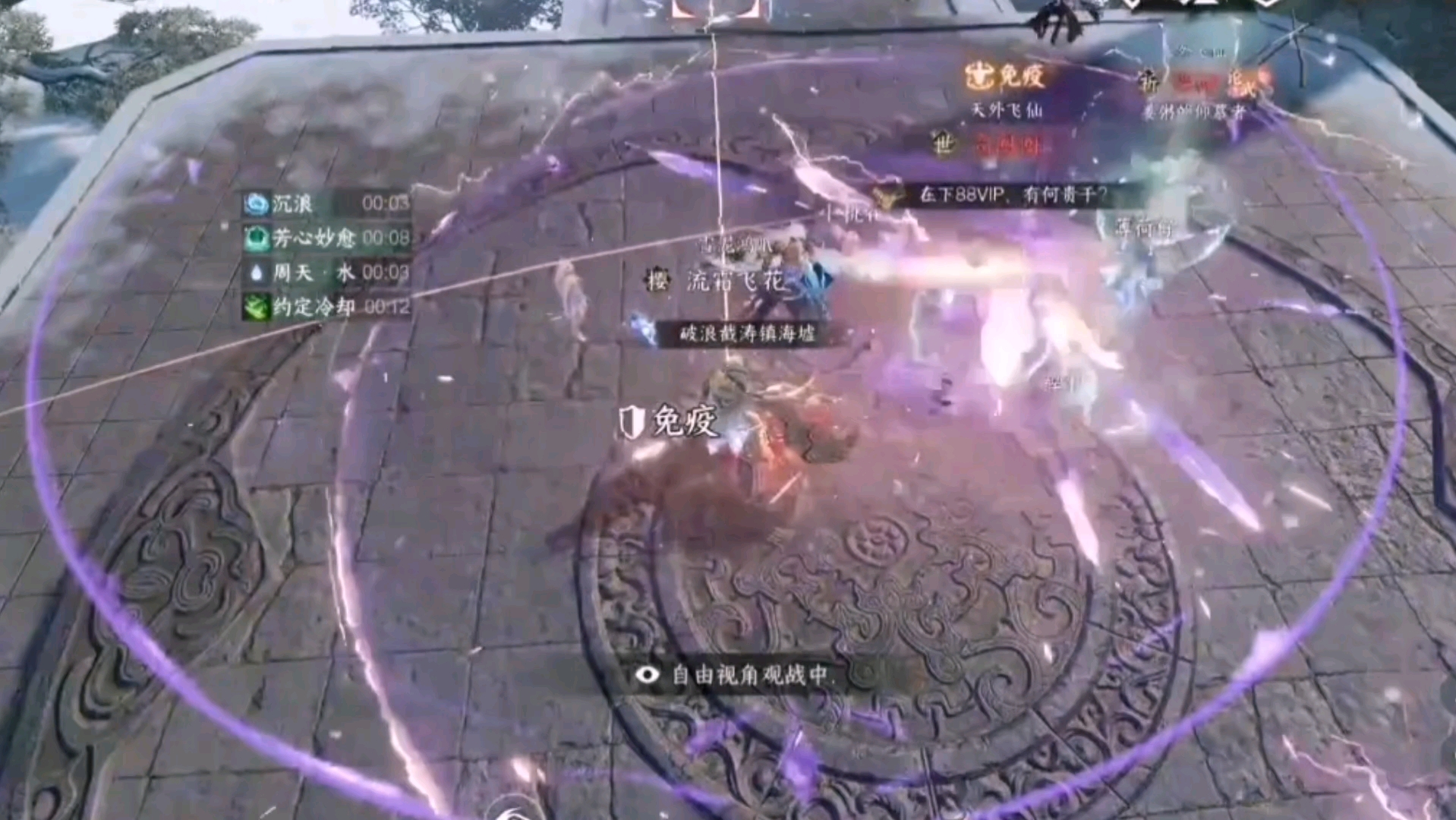 1開場12隊站左右,34隊站右邊,T中間拉BOSS,BOSS會有橫掃扇形技能2接下來會出閃電圈在地下,有2種顏色,藍色和紫色,所有人頭上會出正負極,+號的去紫...